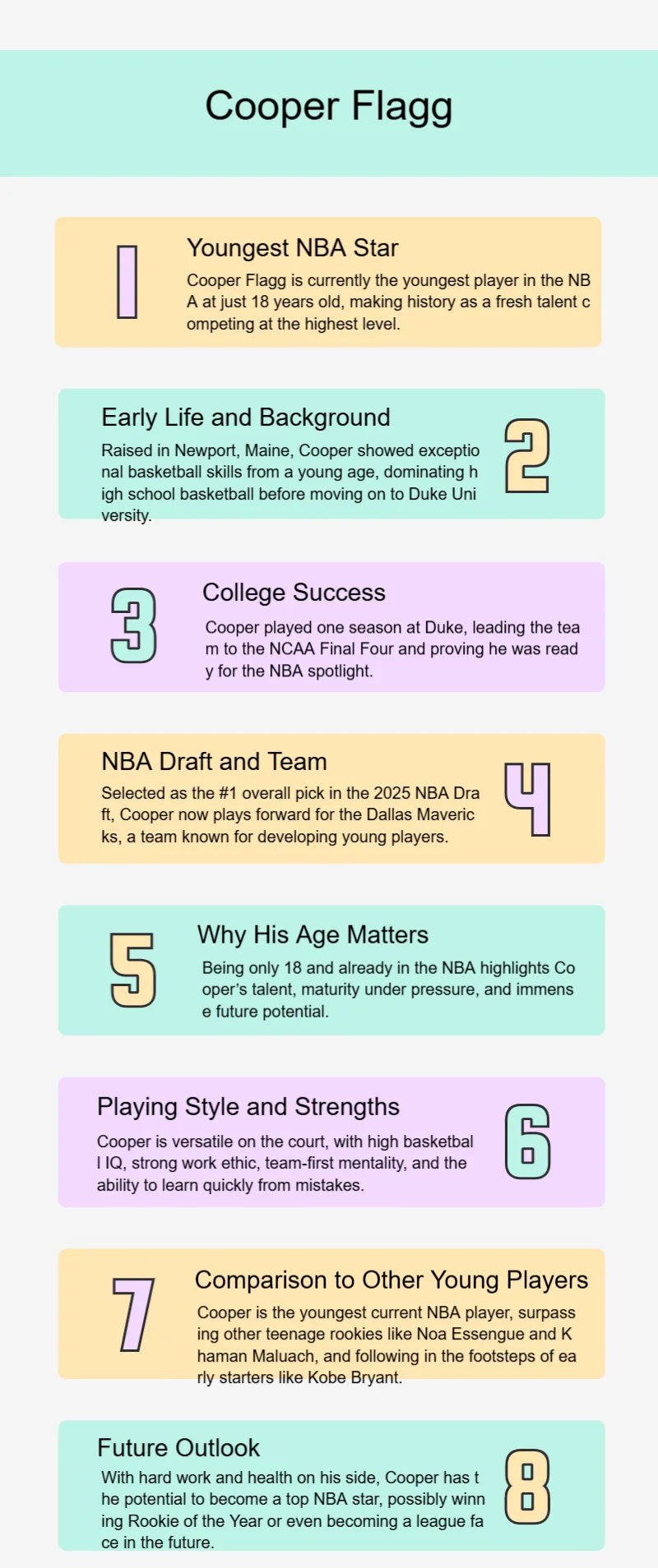 - Cooper Flagg is the youngest player in the NBA right now (just 18 years old!)